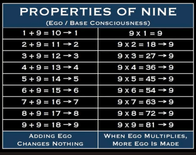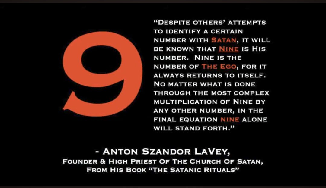 Through reduction, the number 9 is actually the number that represents the satanic mindset, or base consciousness.